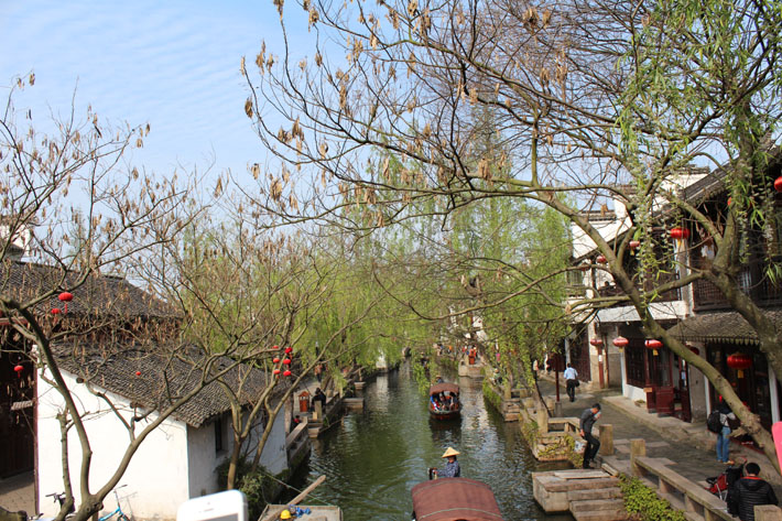 集合而歸,靠著椅背才覺得有點(diǎn)疲憊。車沿著林蔭小路,讓我們有機(jī)會在路途中還能親近那一抹綠。下一站是大家一直期待的水鄉(xiāng)周莊,短暫的車程之后,我們的大隊(duì)伍浩浩蕩蕩的順利了抵達(dá)周莊……