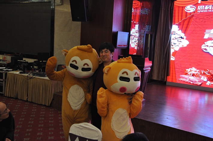 下半場年會開始了,主持人旁邊站得是誰?就是我們鹽城思科的吉祥物思思與科科,這是我們第一次亮相,好可愛~